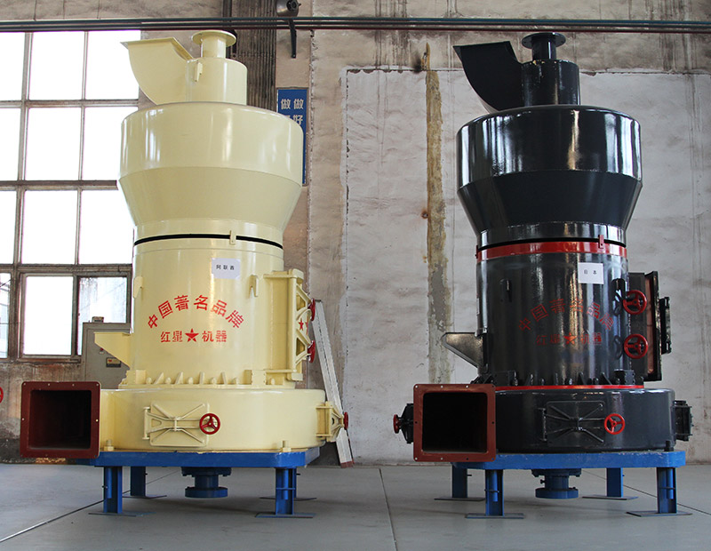 物料經破碎機成小顆粒,由斗式提升機送至儲料斗,再由電磁振動給料機喂入主機內進行研磨。主機內懸掛于梅花架上的磨輥裝置繞中心軸旋轉,磨輥同時繞磨輥軸自轉,在離心力的作用下,磨輥向外擺壓緊磨環,使鏟上之磨料置于其間,因磨輥的滾碾以達到粉碎和研磨作用。磨碎室的粉末被鼓風機的氣流吹到主機上方的分析機進行分析,細度過粗者仍落入主機內重磨,細度合乎規格者隨風流進入到大旋風收集器,收集后經出料管排出即為成品,凈化后的氣流 經大旋風收集器上的管道流入鼓風機。