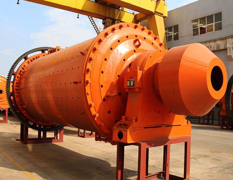 鉬礦由進料裝置經入料中空軸螺旋均勻地進入鉬礦球磨機第一倉,該倉內有階梯襯板或波紋襯板,內裝不同規格鋼球,筒體轉動產生離心力將鋼球帶到一定高度后落下,對鉬礦物料產生重擊和研磨作用。鉬礦在第一倉達到粗磨后,經單層隔倉板進入第二倉,該倉內鑲有平襯板,內有鋼球,將鉬礦進一步研磨。粉狀物通過卸料箅板排出,完成鉬礦粉磨作業。