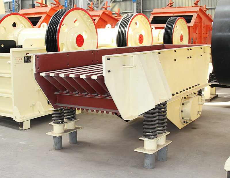 振動給料機又稱振動喂料機。振動給料機在生產流程中,可把塊狀、顆粒狀物料從貯料倉中均勻、定時、連續地給到受料裝置中去,在砂石生產線中可為破碎機械連續均勻地喂料,并對物料進行粗篩分。