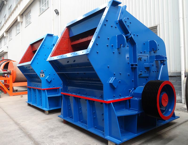 反擊式破碎機是利用沖擊能對中等硬度的脆性物料進行破碎的破碎機設備。工作時,在破碎機電動機的帶動下,轉子高速旋轉,礦石從沖擊過程中獲得巨大的動能,物料進入后,與轉子上的板錘撞擊破碎,并以高速拋向第一級反擊板,礦石再次受到破碎,被反擊板彈回來的礦石又再次受到錘頭的沖擊,繼續重復上述破碎過程。