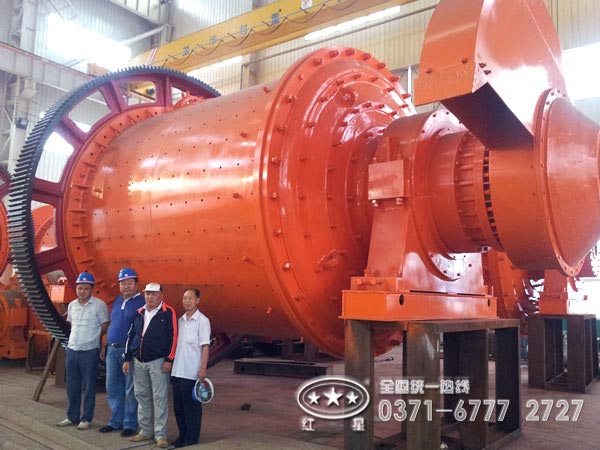 我公司生產銷量較好的大型球磨機是Ф5500×8500,即球磨機筒徑為5.5米,長度為8.5米。此型號的大型球磨機最大產量可達到615t/h,進料粒度為≤25mm,裝量球最大為338t,電機功率4450kw。設備中空軸采用鑄鋼件,內襯可拆換,回轉大齒輪采用鑄件滾齒加工,筒體內鑲有耐磨襯板,具有良好的耐磨性。整個設備重量達到525噸,質量完全可保證。