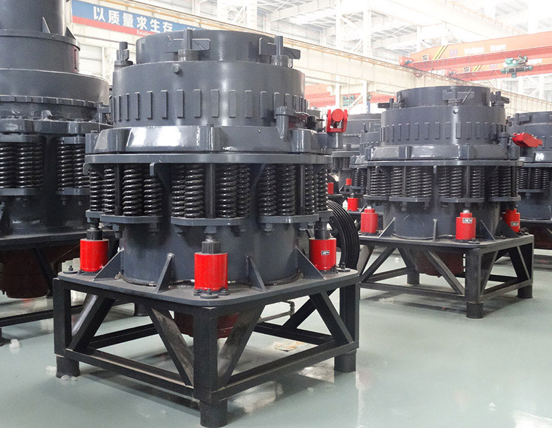 2、主軸:由于機器的主軸沒有頂部支承點,不僅給礦口大,破碎流暢,而且有利于圓錐式破碎機保護。并且主軸粗而短,承受的破碎力更大。